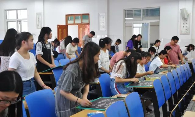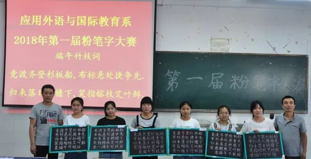 为进一步增强教育类专业学生写好粉笔字的意识,倡导学生苦练教学基本功,提高板书规范化,不断提升教师综合素养,6月13日下午5:00,应用外语与国际教育系2017级教育类专业40名学生在3301教室举行了“书写规范汉字 传承中华文化”为主题的粉笔字比赛。