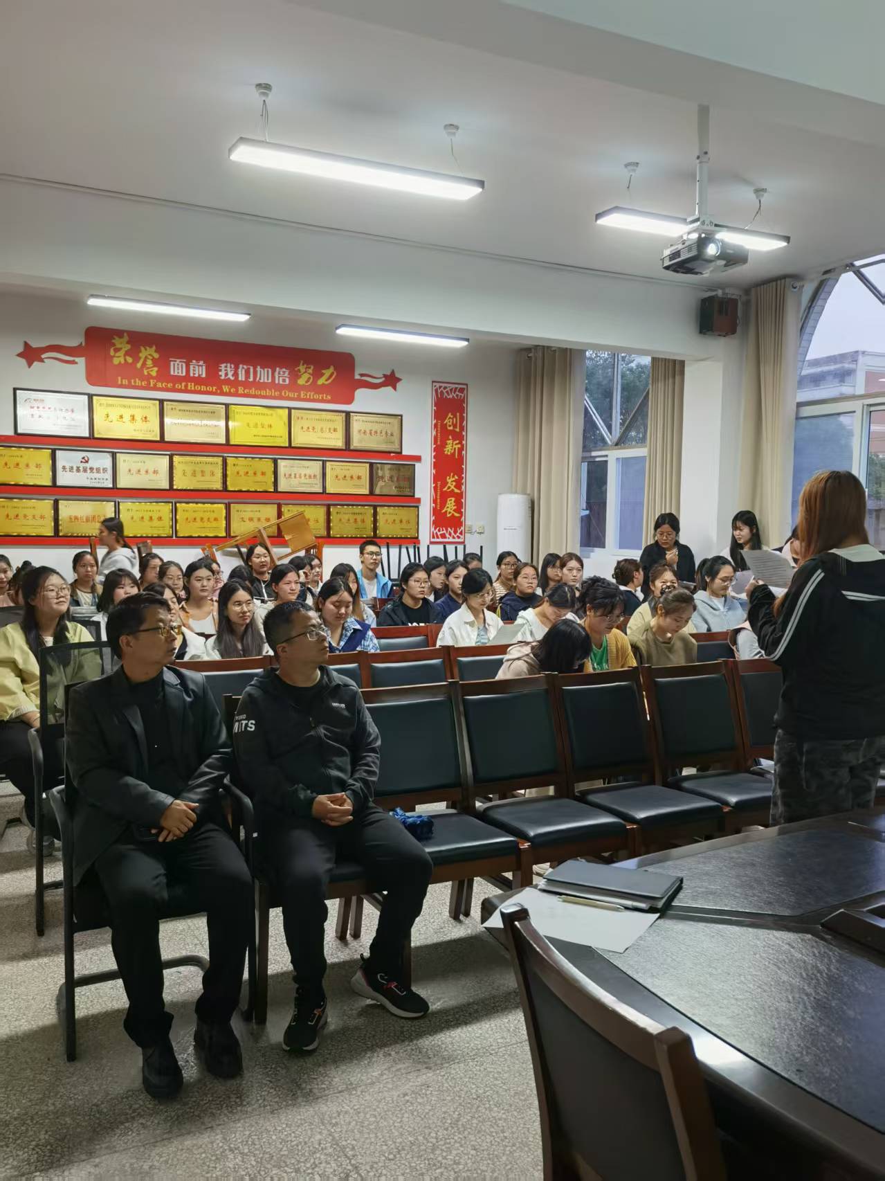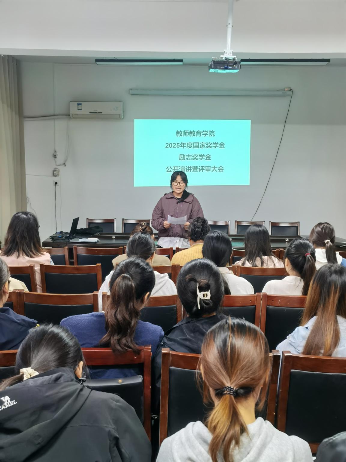 2025年9月22日下午5点教师教育学院在系二楼会议室和3313教室进行了2025年度大学生国家奖学金和国家励志奖学金评审活动。参加的评委老师有:学生处宋蕾教师,院党总支副书记袁海伟,院团总支负责人冯丽娟,全体辅导员,专业社团指导老师等,参加演讲的学生国家奖学金候选人9名、励志奖学金候选人133人。